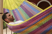 Mayan Legacy King Size Outdoor Cotton Mexican Hammock in Rainbow Colour