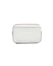 Michael Kors Women's Jet Set Item Large East West Signature Leather Zip Chain Crossbody Handbag (Vanilla PVC/Powder Blush) - One Size