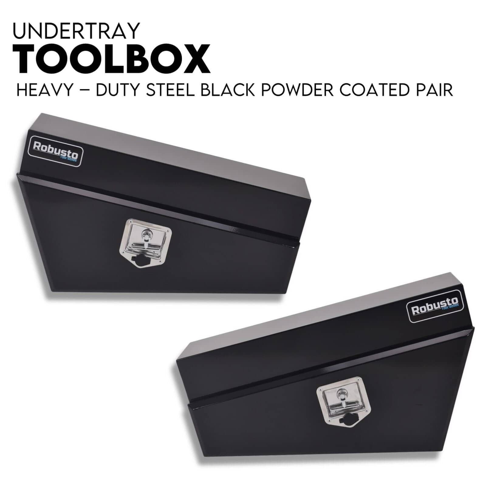 Under Tray Tool Box Underbody Pair Set 750mm Black Steel