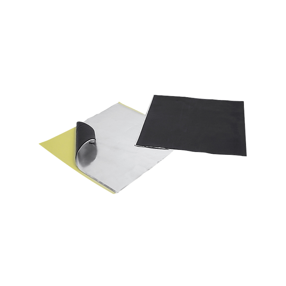 Sound Deadener is a vibration (sound) dampening mat. The material consists of an anti-drum noise absorption layer, combined with an aluminum top layer forming an acoustic barrier.   Features: 1.8sq/m (19.4sq/ft) of Sound Deadener Silver finish  (12 x sheets at 300mm x 500mm) Specifications: Appearance: Black Butyl based core with...