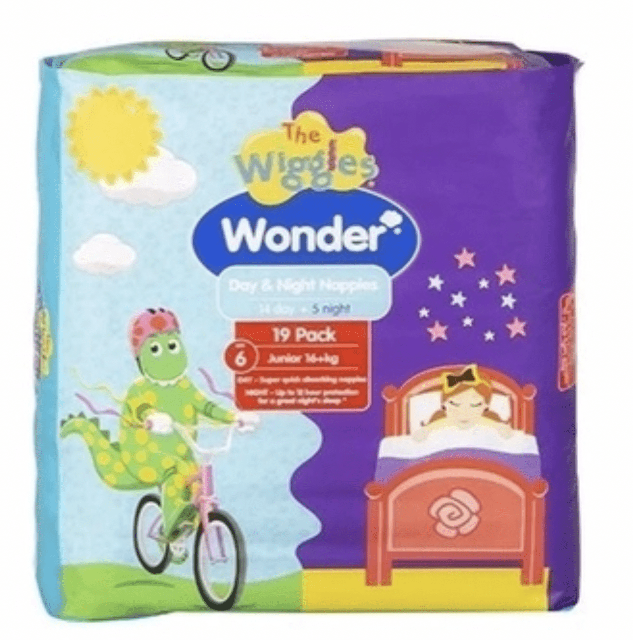 1 Pack 19pcs The Wiggles Wonder Nappies Day & Night Junior 16+kg - Size 6