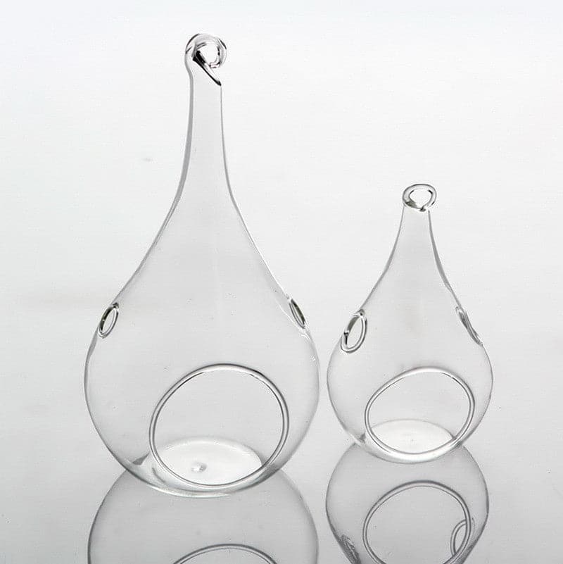 10 Pack of Clear Glass Hanging Tear Drop Tea Light Holder