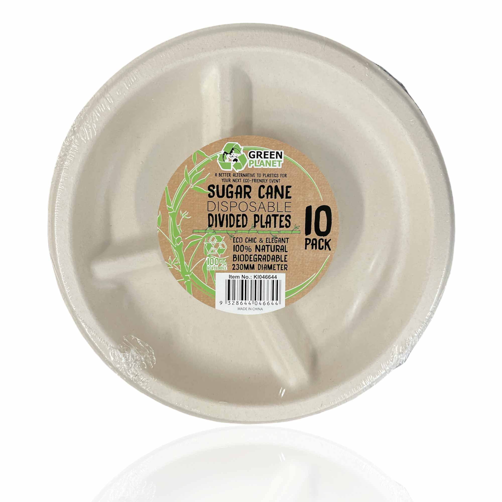 The Green Planet Eco Friendly Disposable Divided Plates 10 pack are sectioned into 3 parts. Your better alternative to the plastic variants, these plates are made from renewable sugar cane pulp, Eco Chic, elegant and 100% natural biodegradable.