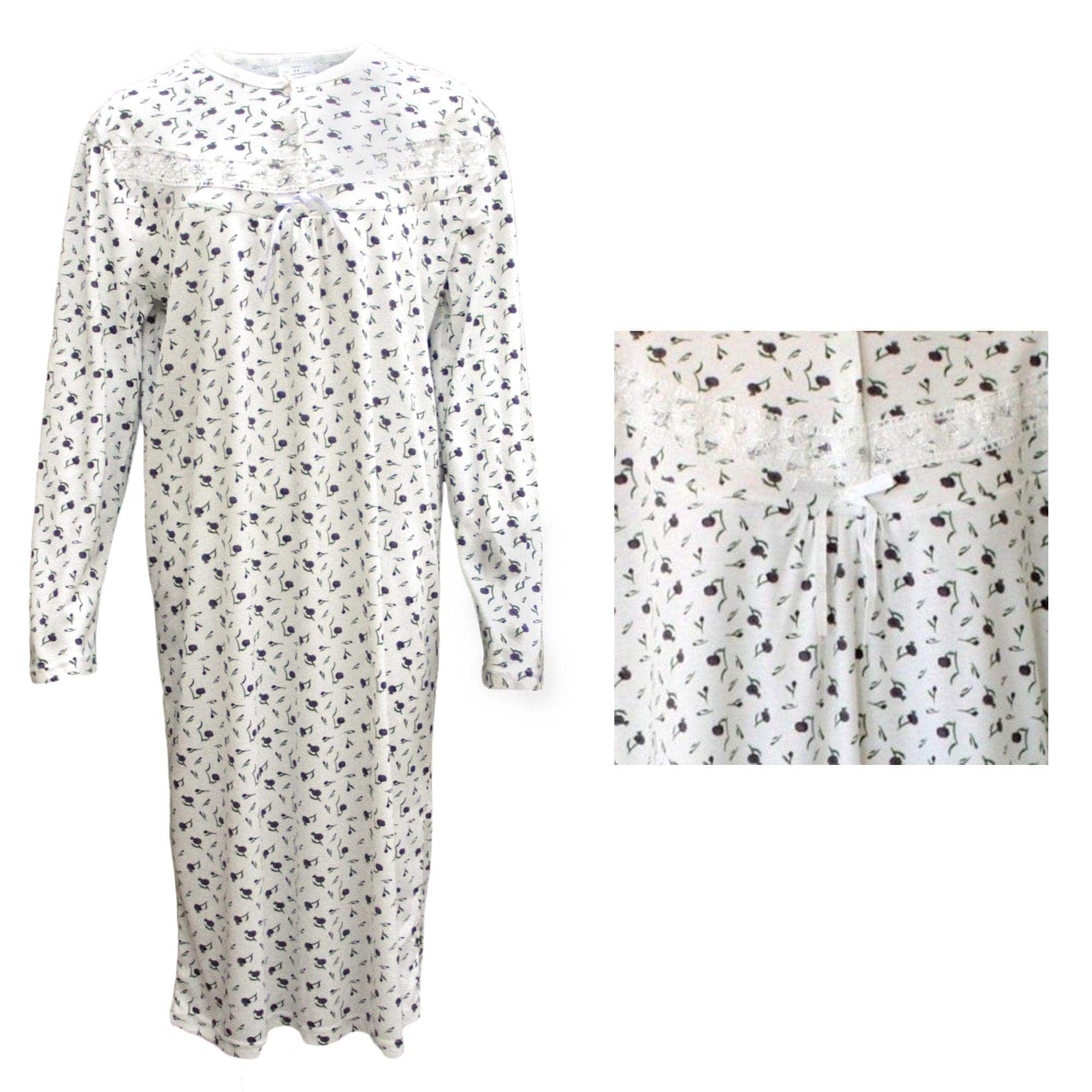 100% Cotton Women Nightie Night Gown Pajamas Pyjamas Winter Sleepwear PJs Dress, Purple Flowers, 14