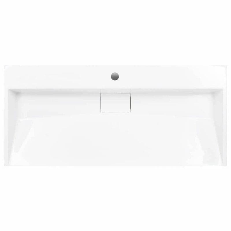 Bathroom White Basin With Faucet Hole Rectangular??stone Cast Sink Vanity Bowl