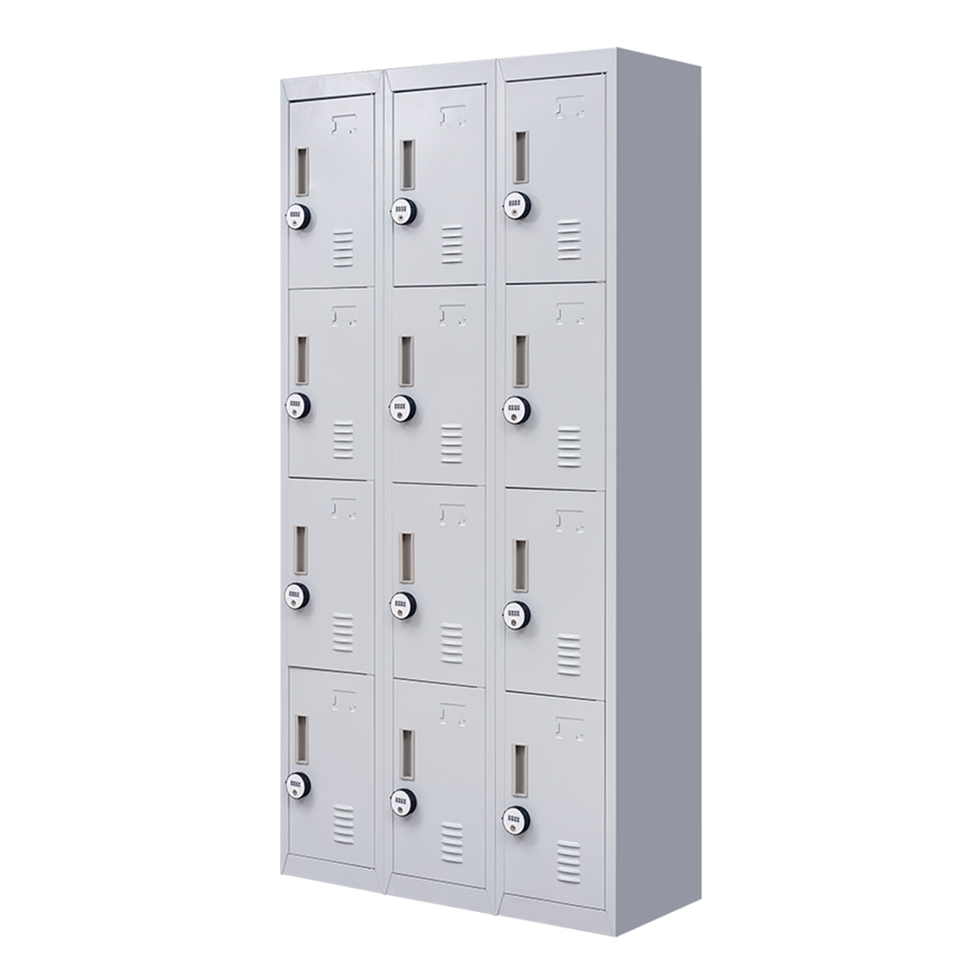 The unit has 12 individual locker compartments stacked in a 3 x 4 grid. Each locker provides ample space for personal items – and can hold up to 30 kg. Built-in ventilations slits keep the stored items from smelling musty. Users may also customise their locker with a name tag or label in the designated slot provided. This comes comes with 4-digit combination lock to ensure safety of your belongings.