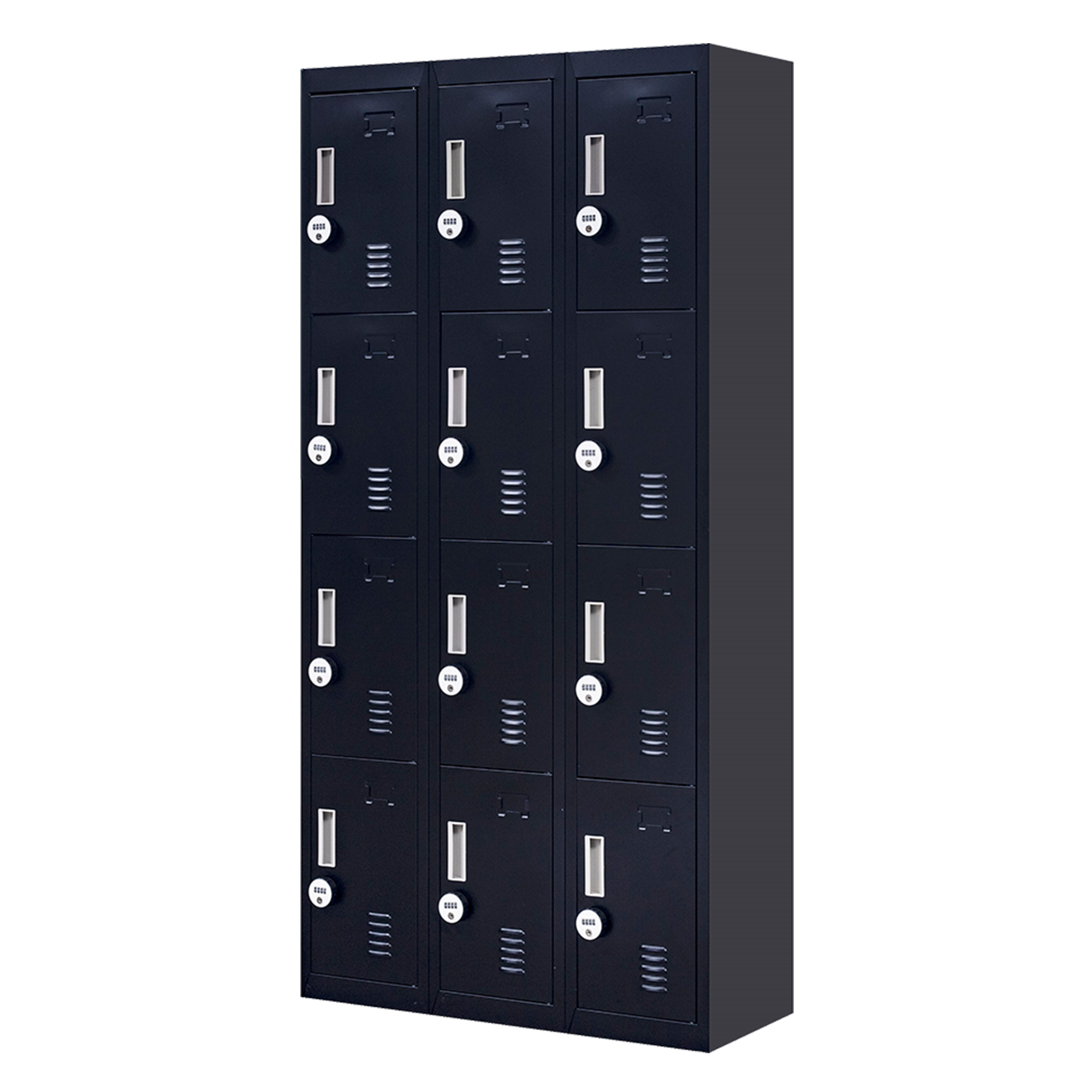 The unit has 12 individual locker compartments stacked in a 3 x 4 grid. Each locker provides ample space for personal items – and can hold up to 30 kg. Built-in ventilations slits keep the stored items from smelling musty. Users may also customise their locker with a name tag or label in the designated slot provided. This comes comes with 4-digit combination lock to ensure safety of your belongings.