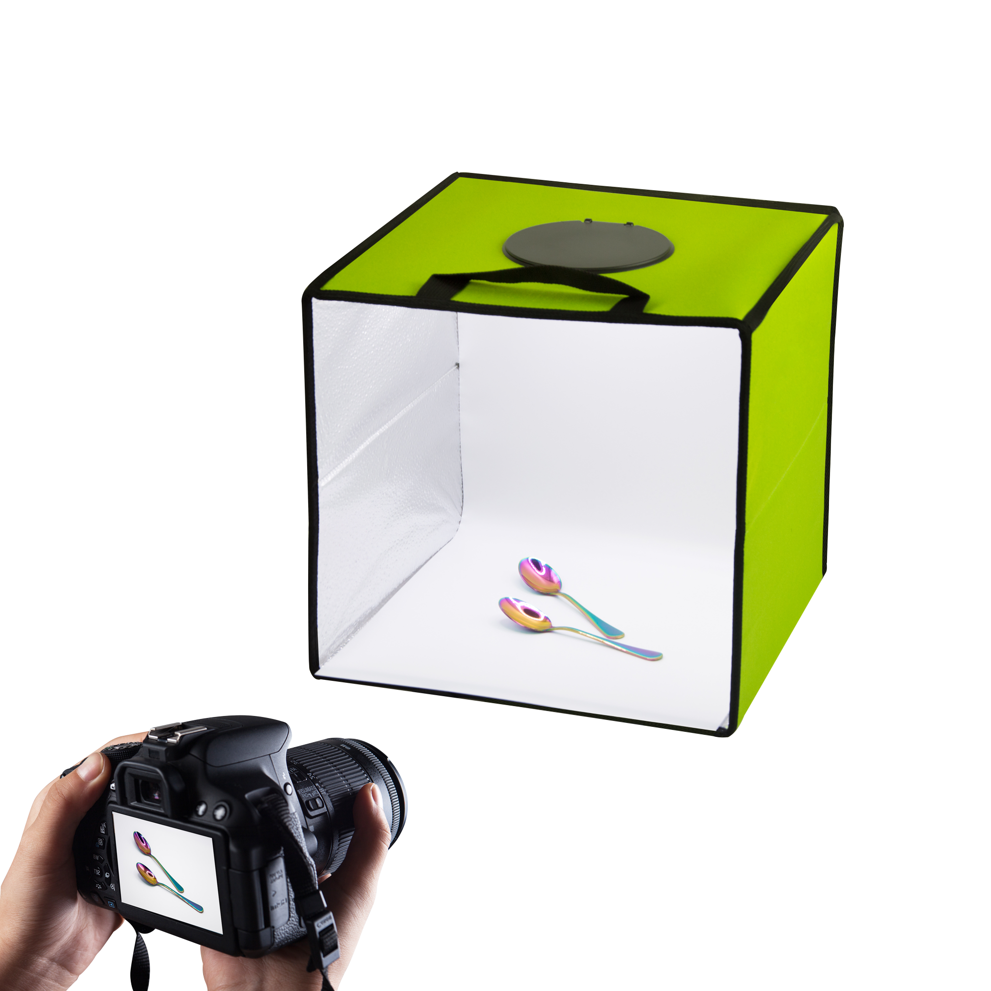 It's easy to assemble in only a few seconds, so you can get it up and running in no time. And, it folds up so it's easy to carry everywhere you go. With its built-in LED light, it provides optimum lighting, reducing shadows and reflections. Its stone-grain fabric gathers light, distributing it throughout the box with a three-dimensional effect to highlight your photo's subjects.