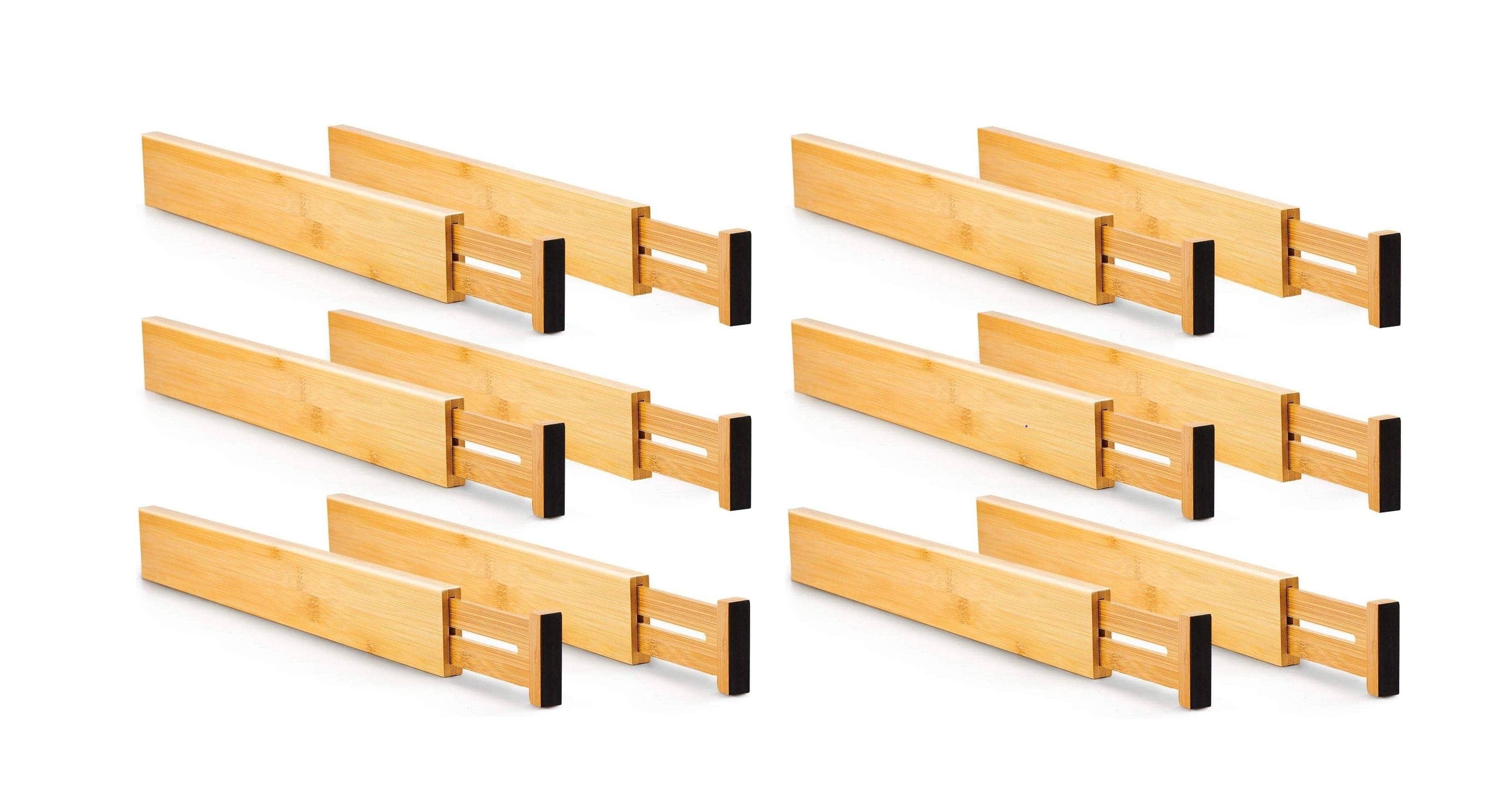12 Pack Bamboo Adjustable Kitchen Drawer Dividers (Large, 44-55 cm)