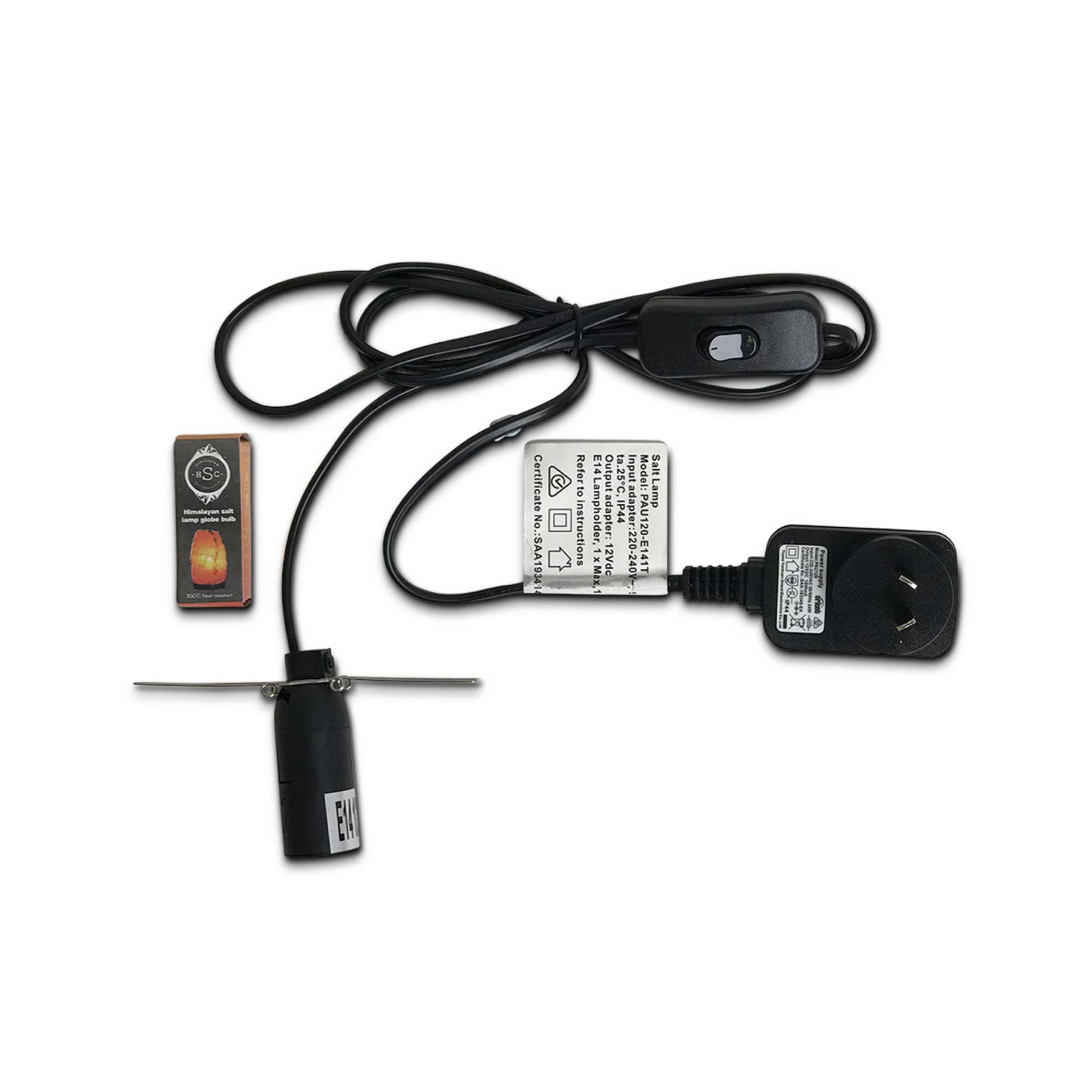 Replacement On/Off switch and 12V 12W light bulb replacement parts for Himalayan salt lamp. Safety tested and SAA approved.