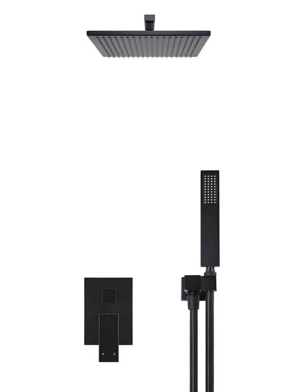 2020 New matte Black square shower head hand held head wall mixer with Diverter set