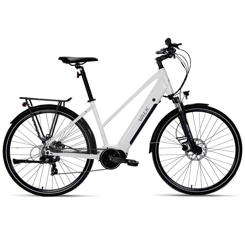 2023 VALK Metro MT 5 + Electric Hybrid Bike, Mid-Drive, Mixte Frame, Medium, White