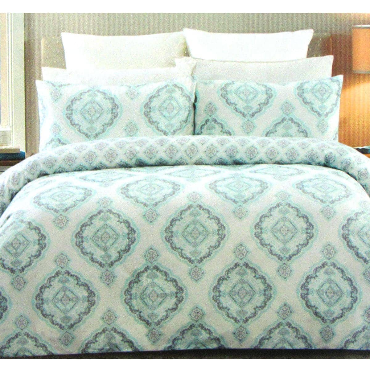 This elegant and timeless design 225TC Persia Cotton Rich Easy Care Quilt Cover Set will give your bedroom an entirely fresh new look. The quilt cover features classic damask design printed in soft colour tones of white, grey, and turquoise that will give your bedroom an instant face lift. It is made from quality and soft touch polyester cotton fabric with easy care properties you can enjoy for years to come.