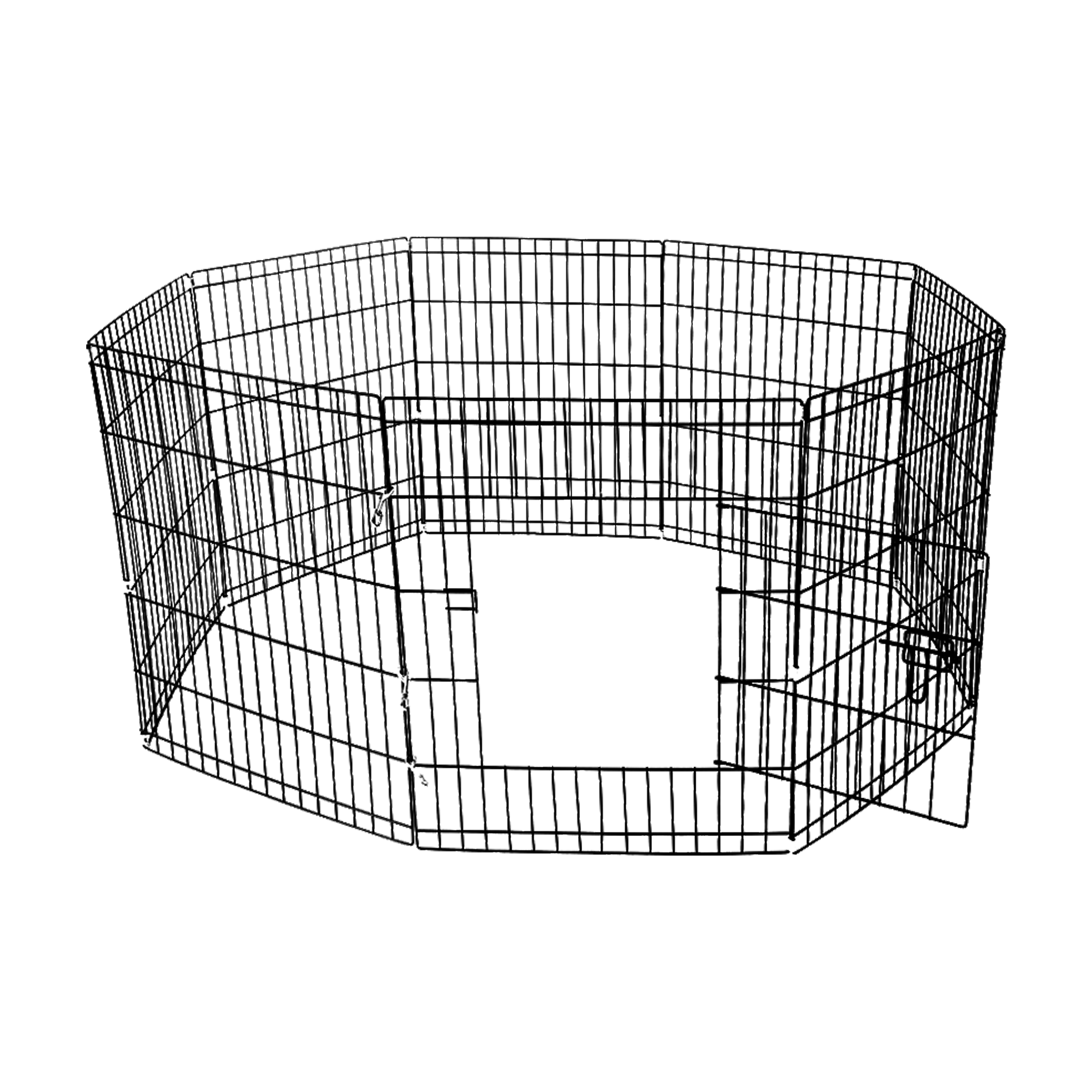 This pet playpen is easy to install and easy to fold away for storage. With a bolt latch on the access door, two locks, and round edges, your furry friend will stay safe and secure. At 24 inches in height, it works with small dogs and puppies, as well as small kittens, guinea pigs, ducks, rabbits, and other small pets that aren't good climbers. Crafted from powder-coated steel, it's built to last for years, even with everyday use. Give your pet a zone of its own with a special place to play. Get your pet playpen today!