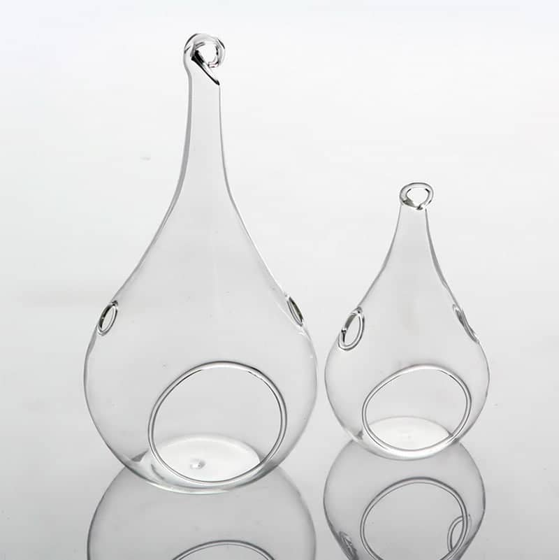 25 Pack of Clear Glass Hanging Tear Drop Tea Light Holder