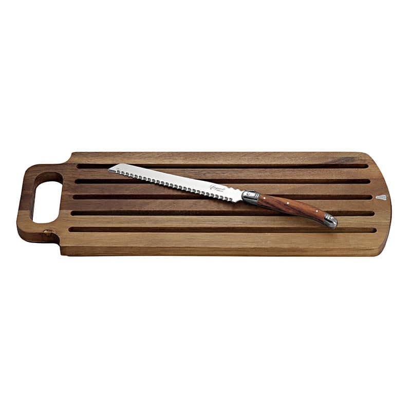 Laguiole Silhouette is a premium range epitomising quality and elegance. The Acacia Bread Board and Wooden Bread knife is a great gift or personal purchase to finish a table setting in the most alluring way. Acacia is a Sustainable wood which is used in this instance to contribute towards the protection of the environment.