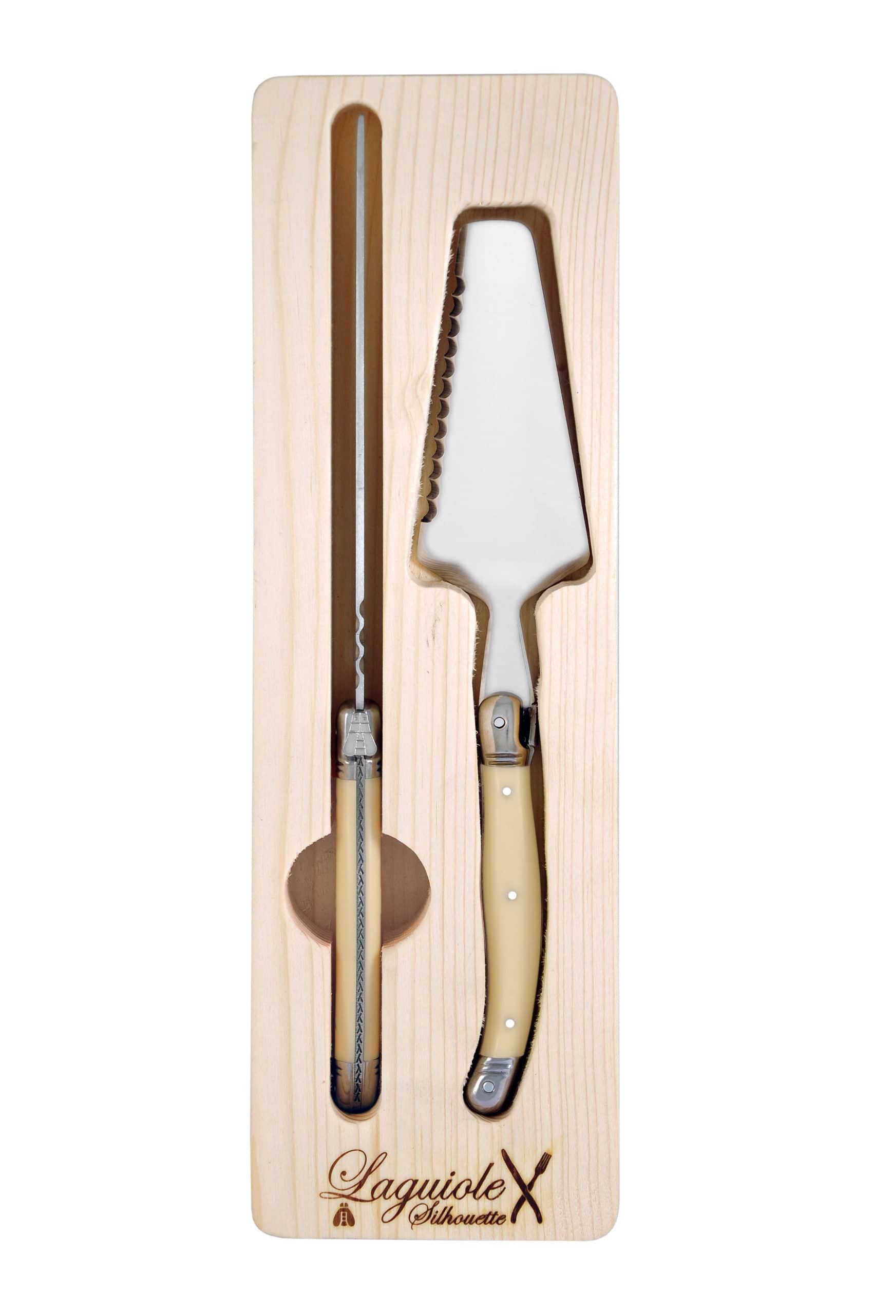 Laguiole Silhouette is a premium range epitomising quality and elegance. The Ivory Two-Piece Cake Set is presented in the pine wood traditional presentation boxing and is a great gift or personal purchase to finish a table setting in the most alluring way.