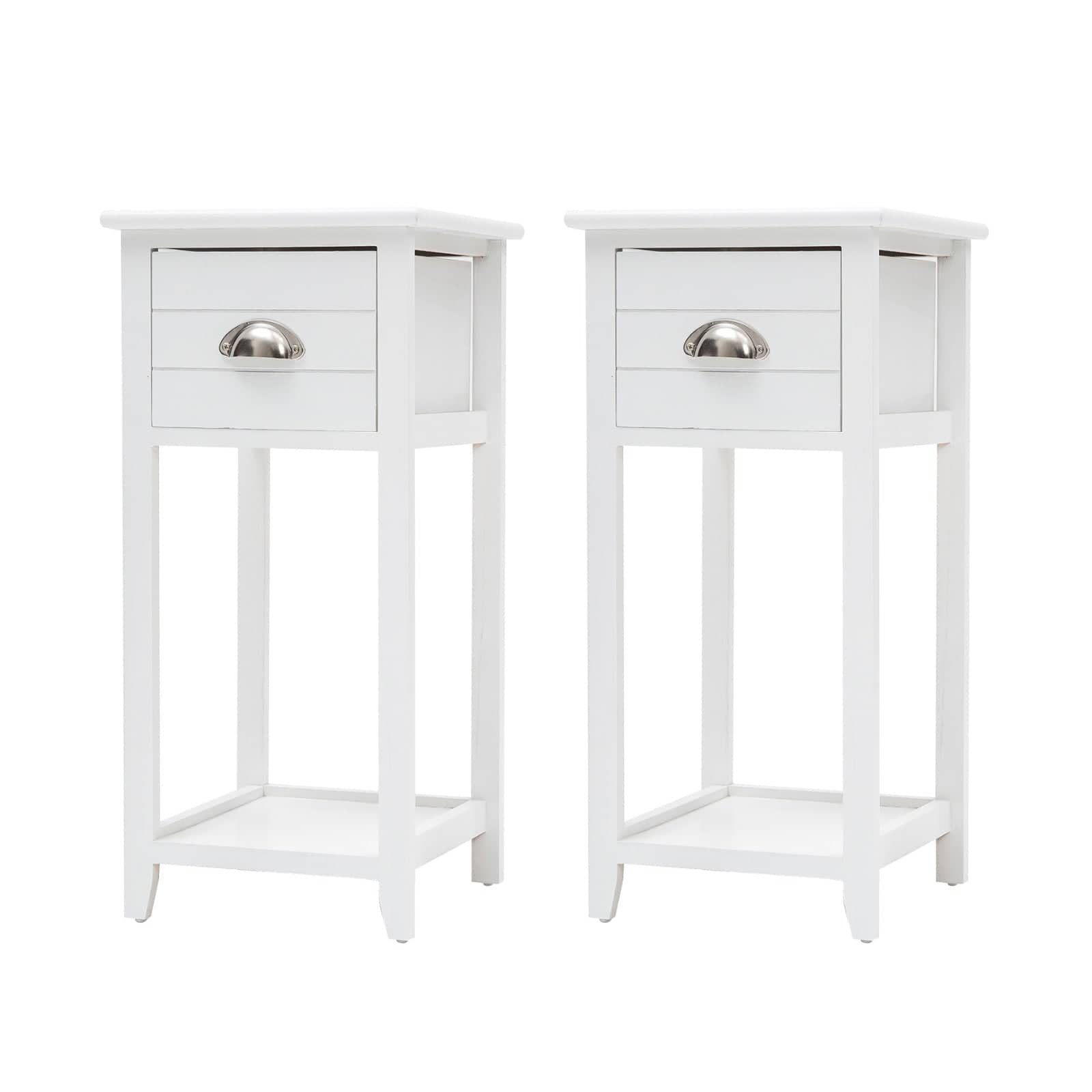La Bella 2 Set Bedside Table Drawer Vintage Side Table Storage Cabinet Bedroom VALERIE - White