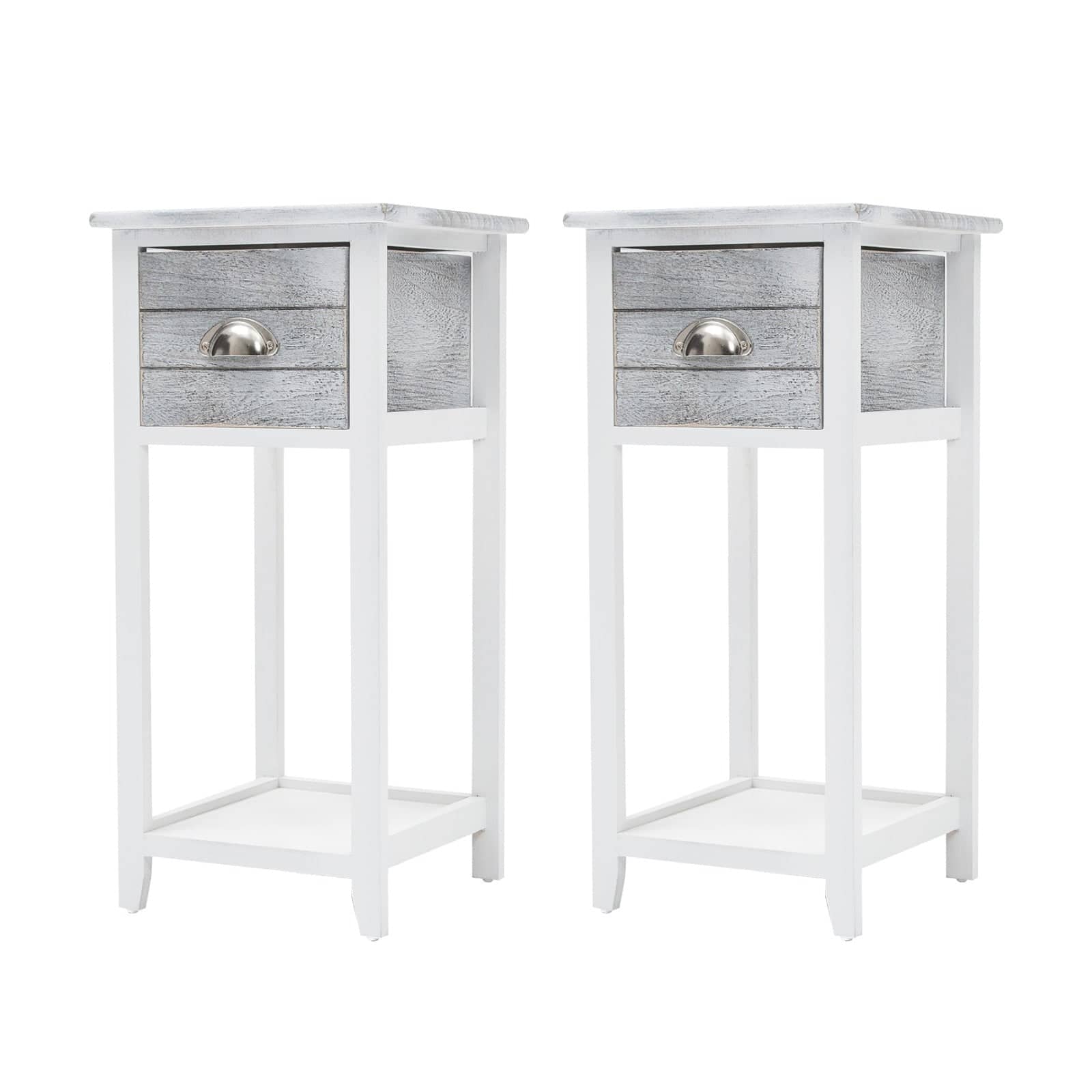 2X Bedside Table Drawer Vintage Side Table Storage Cabinet VALERIE GREY