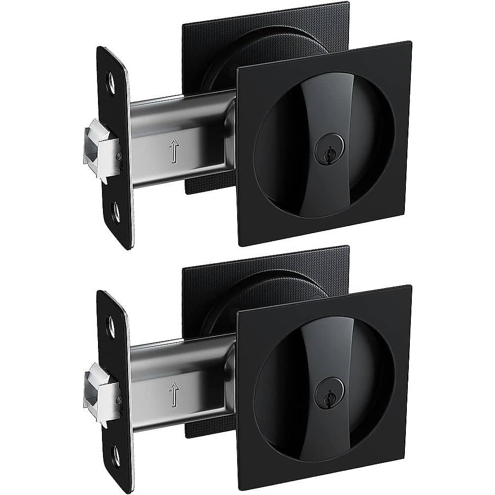 2x Contemporary Entry Square Pocket Door Hardware with Key