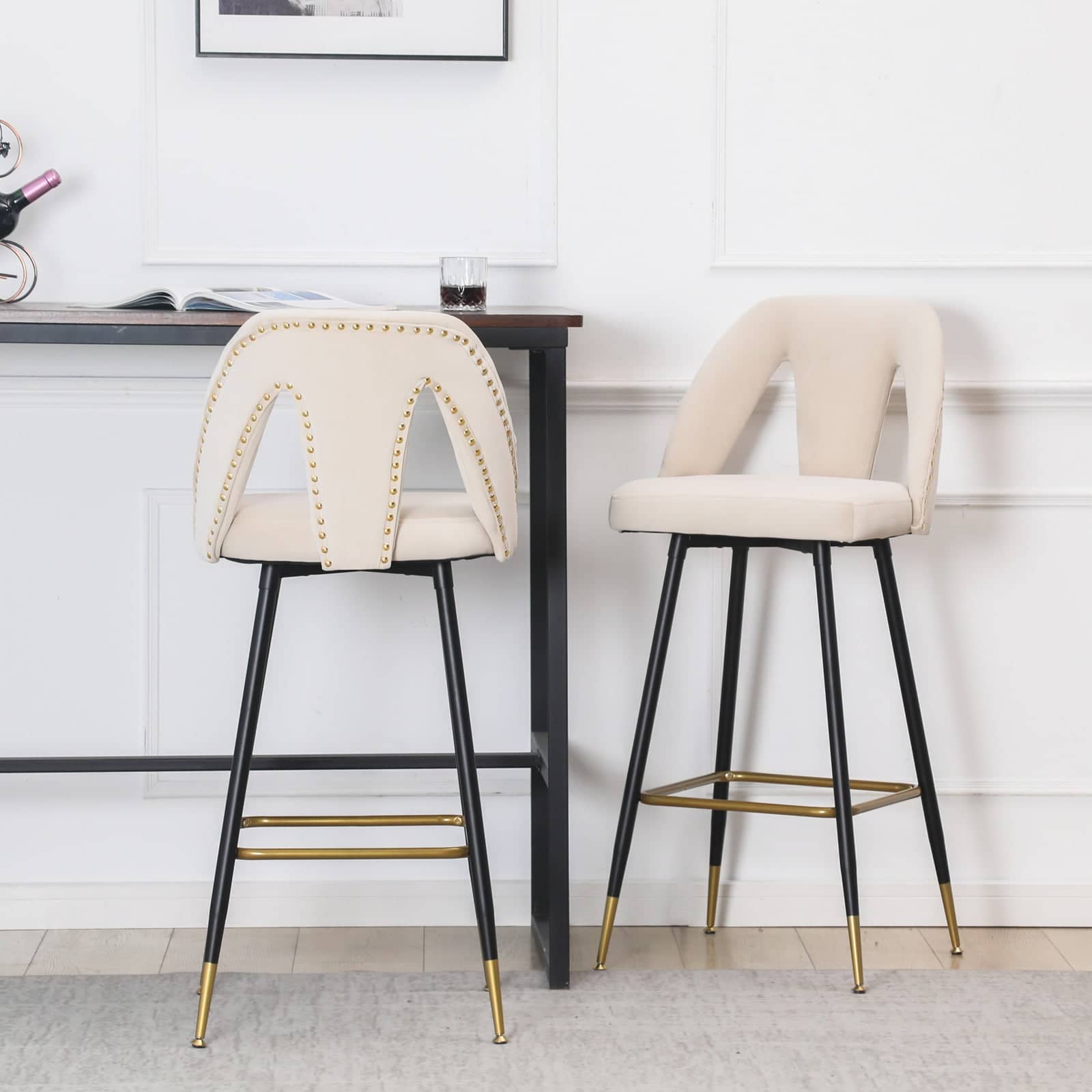 ELEGANT BAR STOOLS: Velvet combination golden nail design, making bar stool looks unique and elegant, which will well match your modern style decoration.