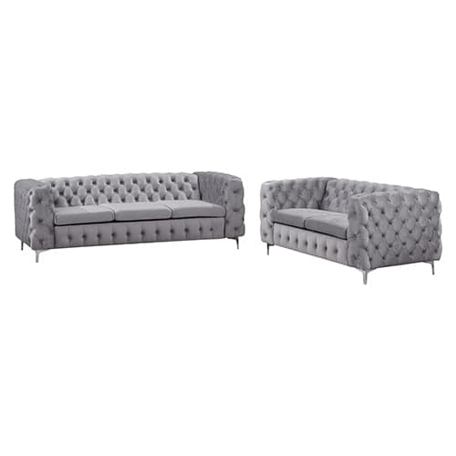 3+2 Seater Sofa Classic Button Tufted Lounge in Grey Velvet Fabric with Metal Legs