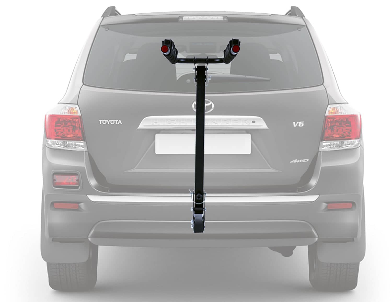 This convenient hitch-mounted rack is capable of transporting up to three bikes. Its folding carrier arms design features a standard 2" hitch receiver.