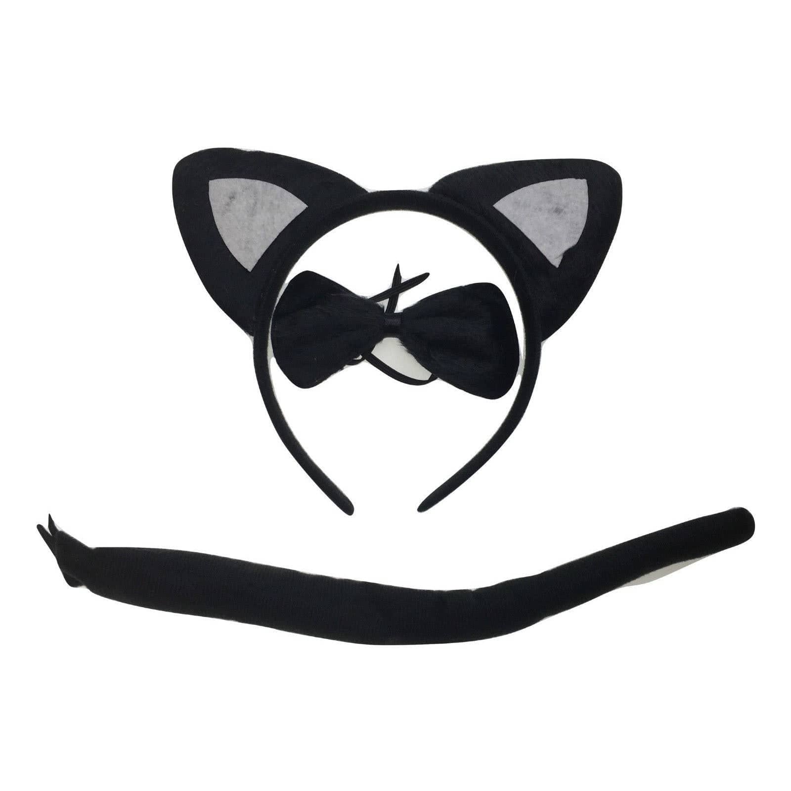 3pcs Set Animal Costume Dress Up Party Bow Tie Tail Ears Book Week - Black Cat