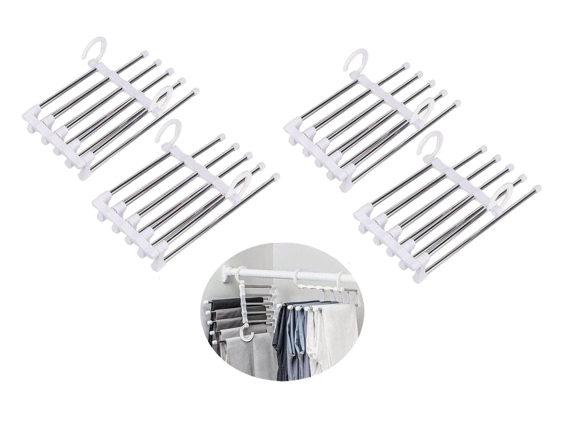 4 Pack Stainless Steel Adjustable 5 in 1 Pants Hangers Non-Slip Space Saving for Home Storage