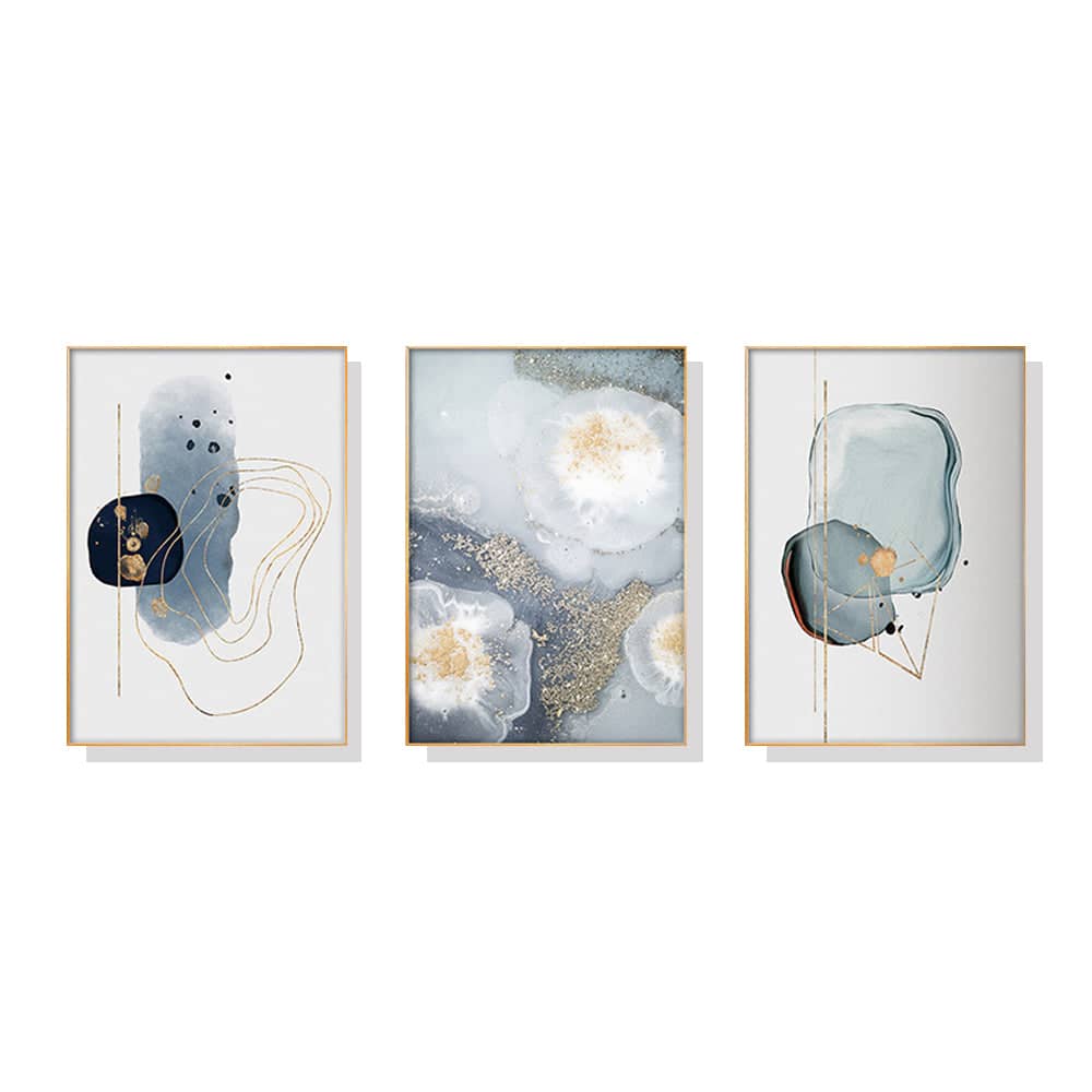 40cmx60cm Marbled Light Grey 3 Sets Gold Frame Canvas Wall Art