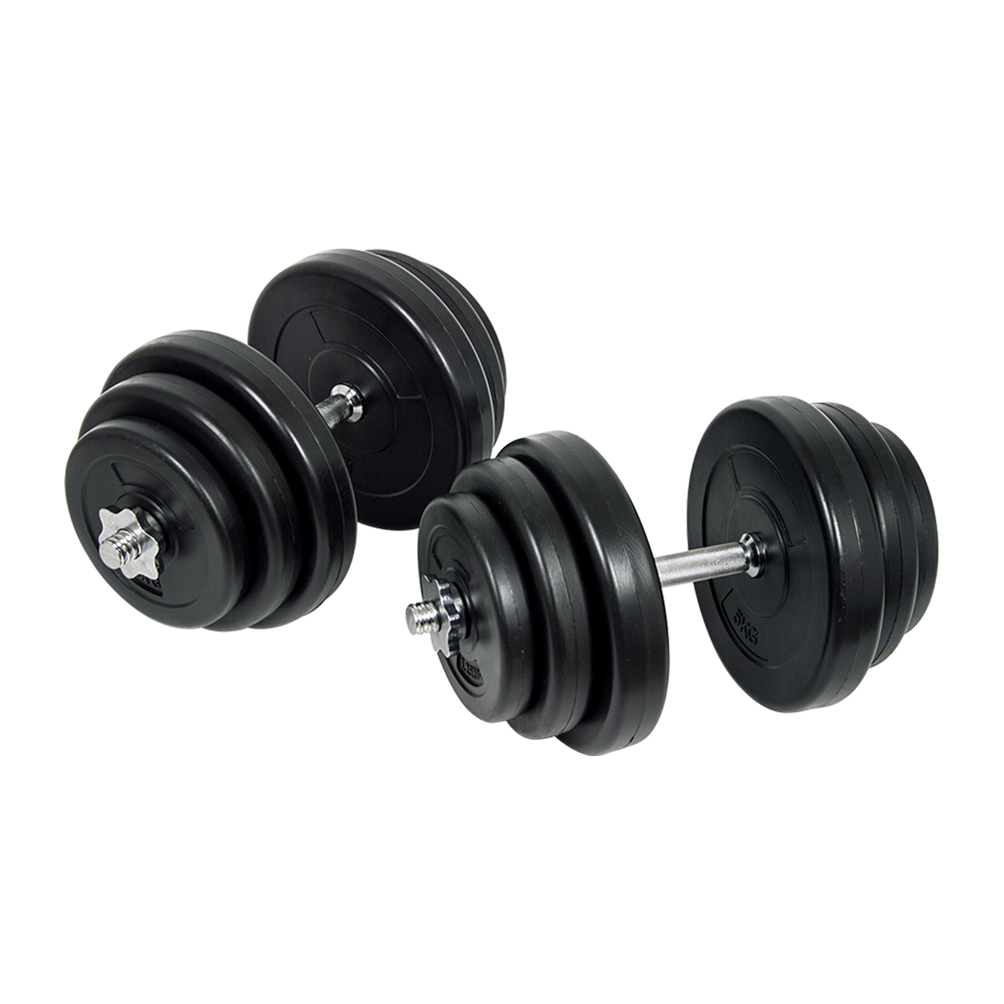 The set comes with twelve plastic-coated cement plates in small increments, so you can increase your load gradually as you build your strength. Star-shaped nuts made from high-quality steel keep the weights in place for easy lifting.