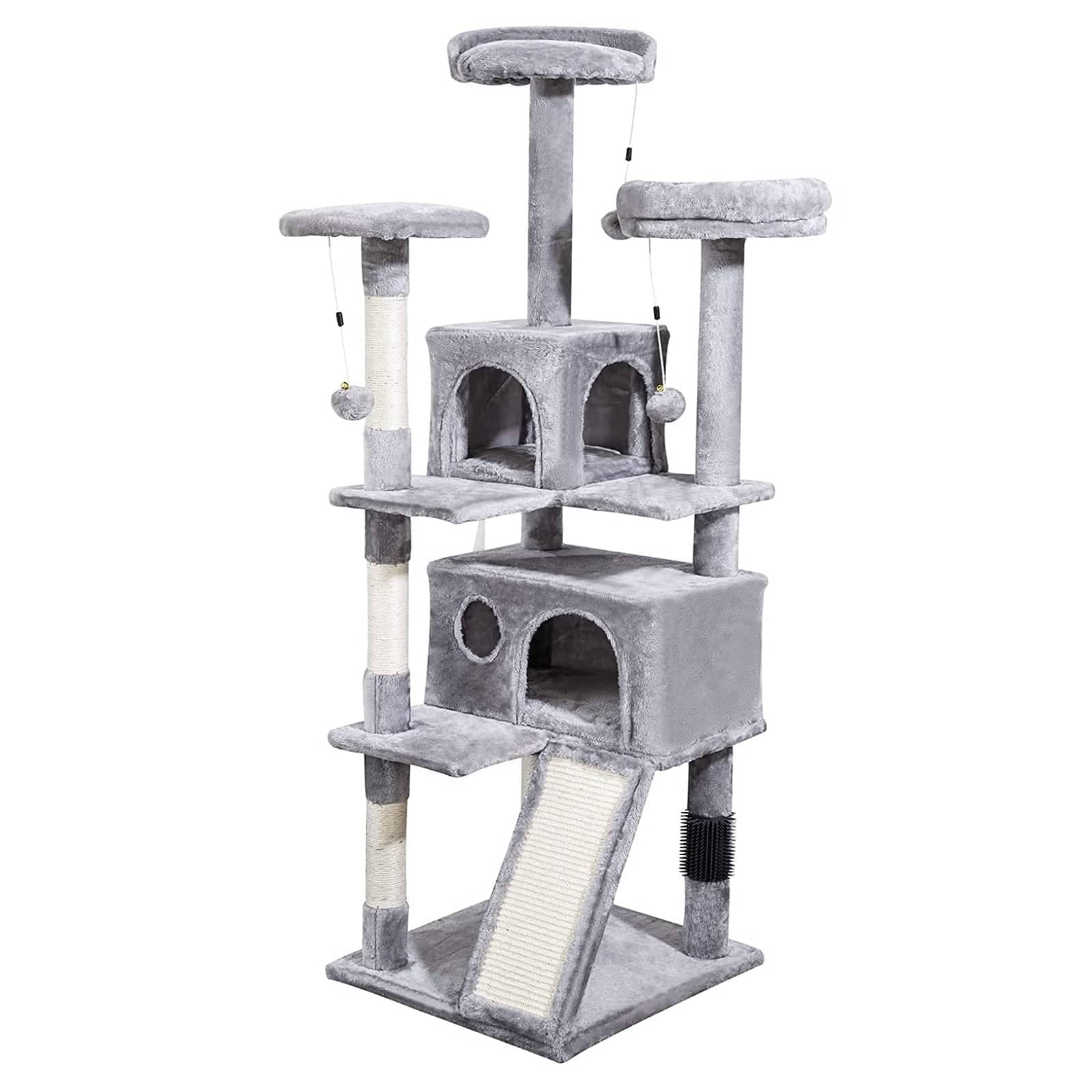 Curious cats will love to explore the multilevel and multi-zoned design that provides various napping positions, hiding spots, and a place to divert their scratching instincts.