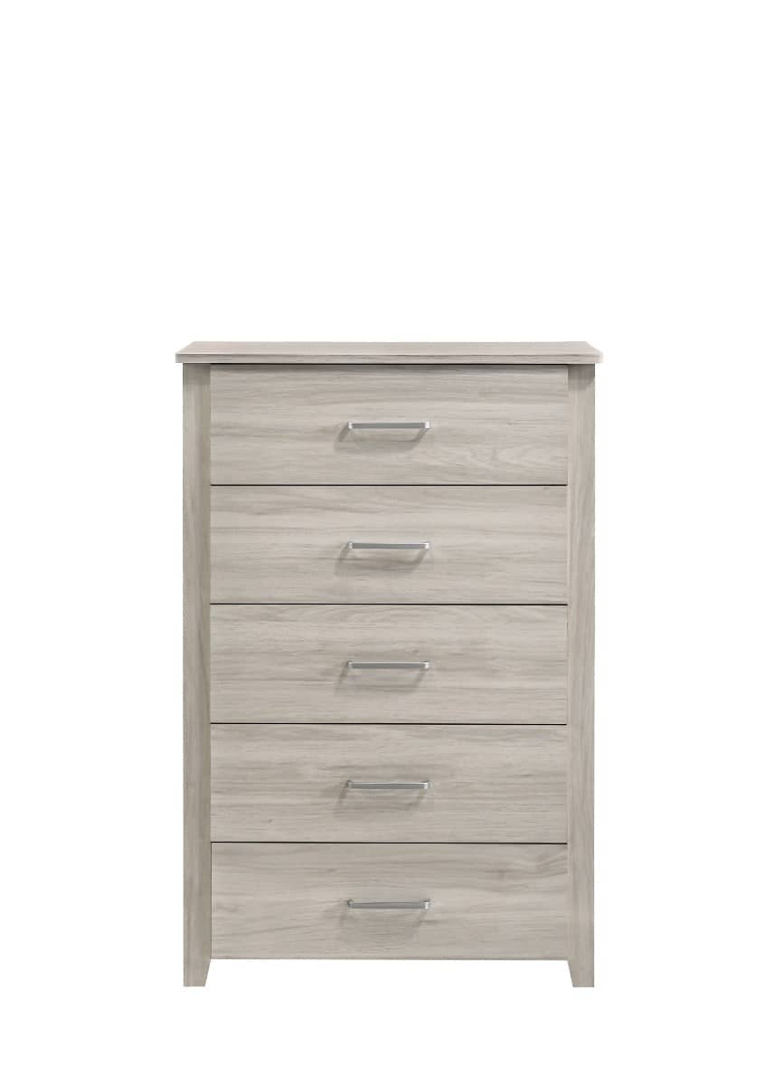 Showcasing a sophisticated white oak colour, the Tallboy is visually appealing dresser and the perfect addition to any bedroom. 5-Drawer Dresser gives a light, airy feel to any space. This lavish range combines the clean lines of contemporary styling with the look of natural wood in the stylish bedroom suite.