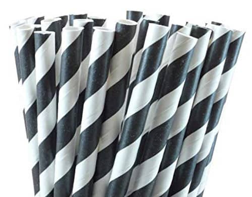 50 Pack Black White Drinking Straws Biodegradable Eco Paper Birthday Party Event Bistro Bar Cafe Take Away