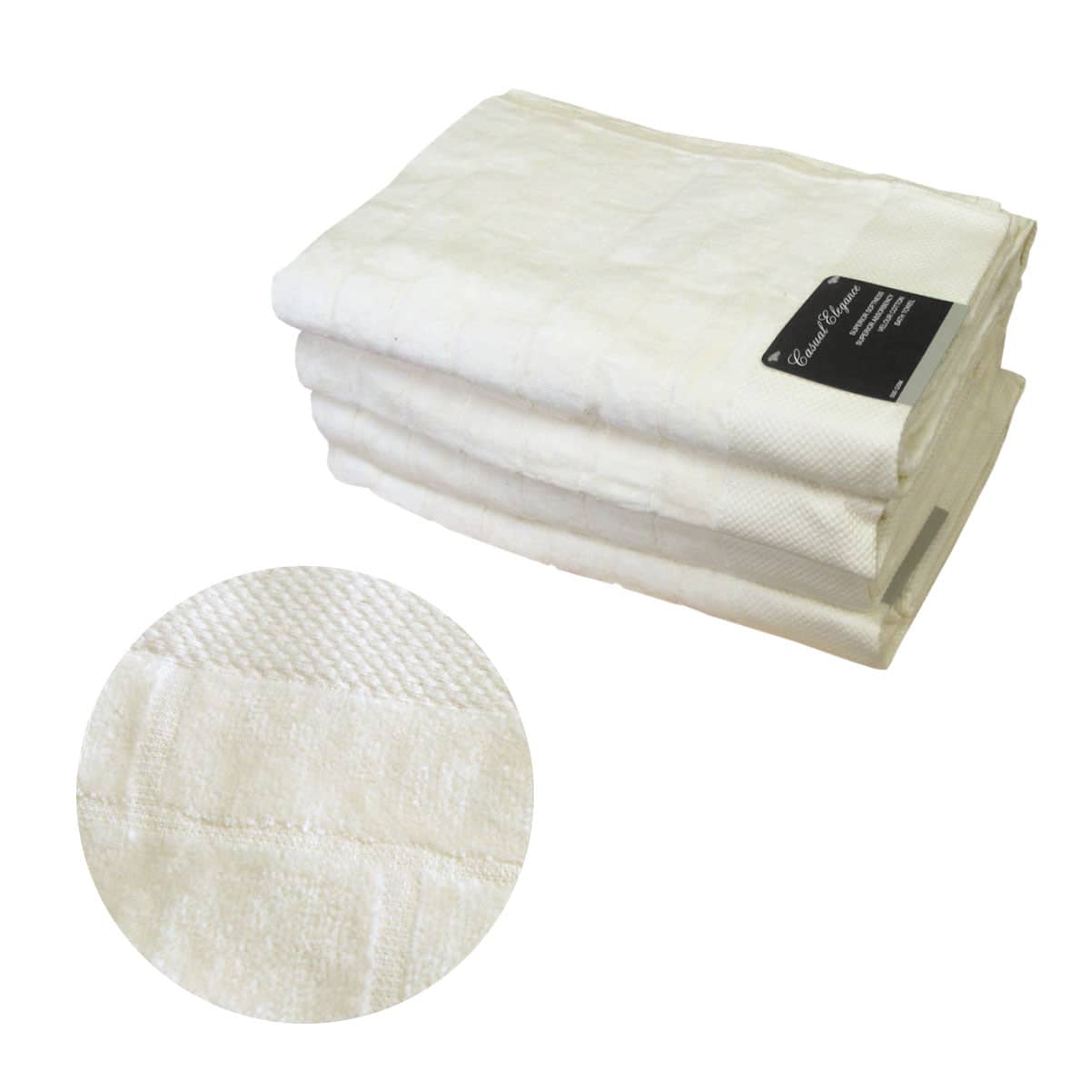 500GSM Set of 4 100% Cotton Velour Bath Towels Ivory 70 x 140 cm