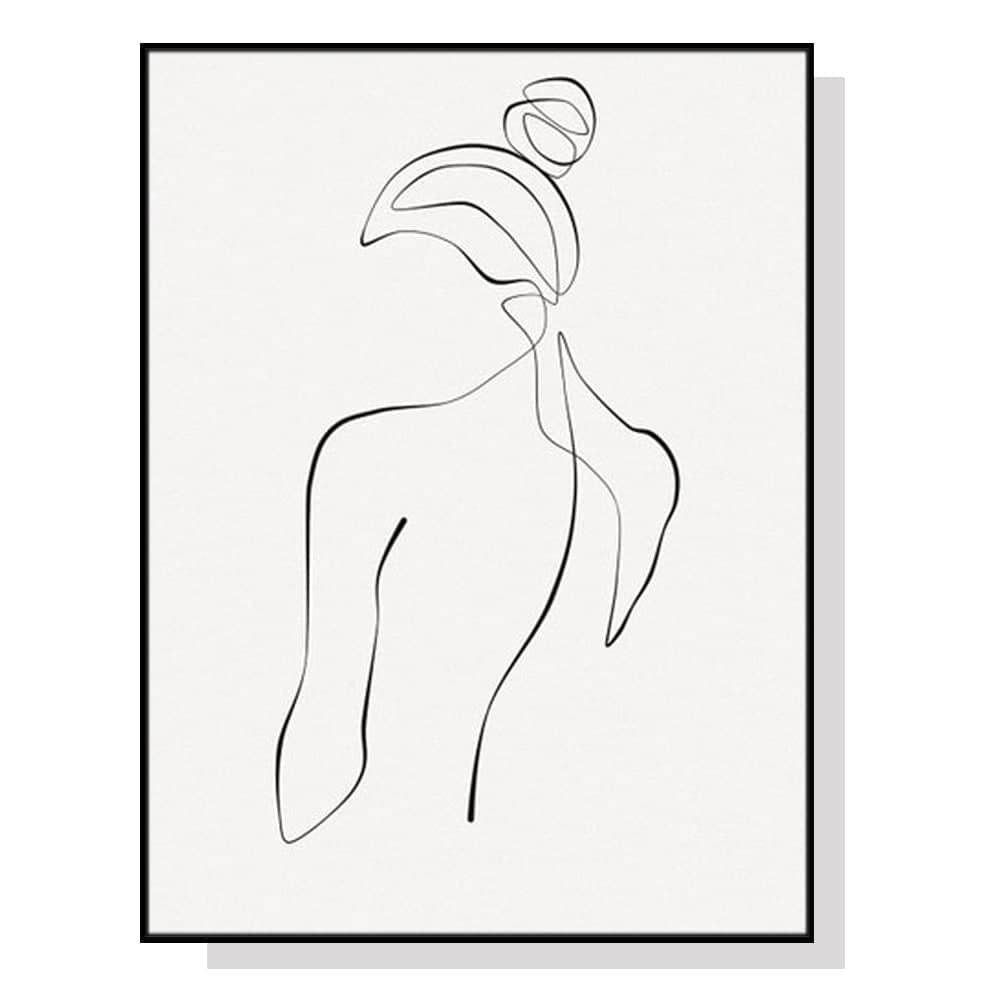 50cmx70cm Woman Back Line Art Black Frame Canvas Wall Art
