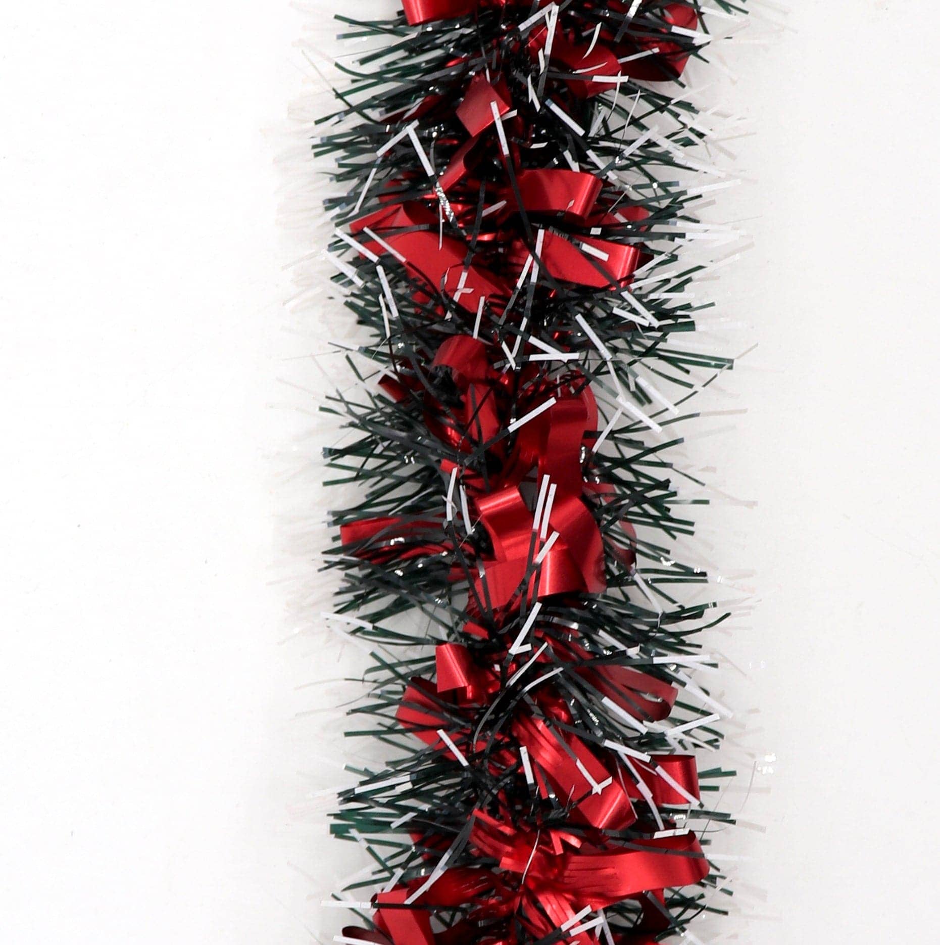 5x 2.5m Christmas Tinsel Xmas Garland Sparkly Snowflake Party Natural Home Décor, Bows (Black Red)