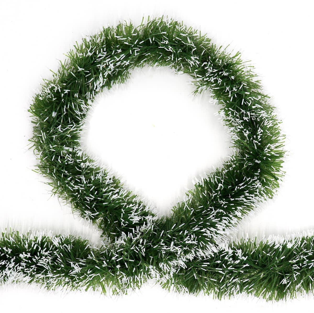 5x 2.5m Christmas Tinsel Xmas Garland Sparkly Snowflake Party Natural Home Décor, Snow Tips in Green