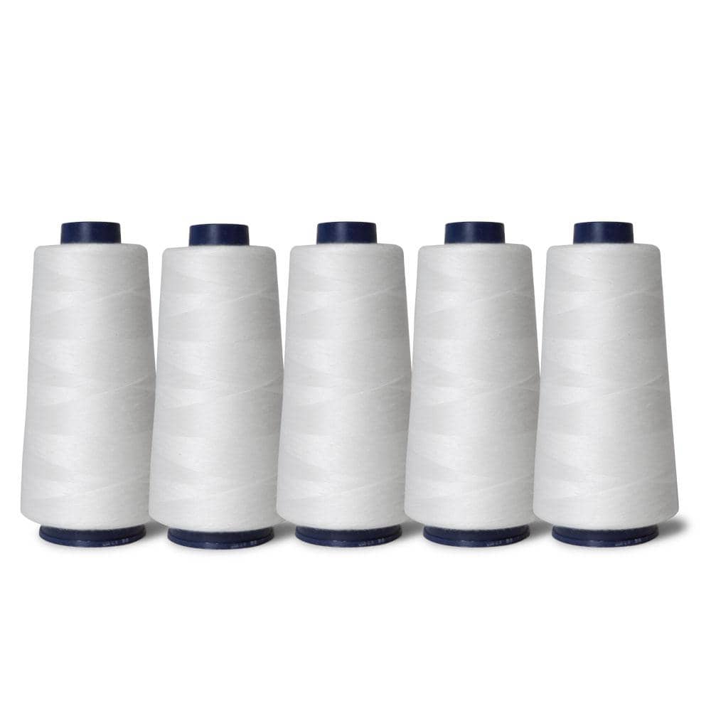 5x White Sewing Overlocker Thread - 2000m Hemline Polyester Overlocking Spools