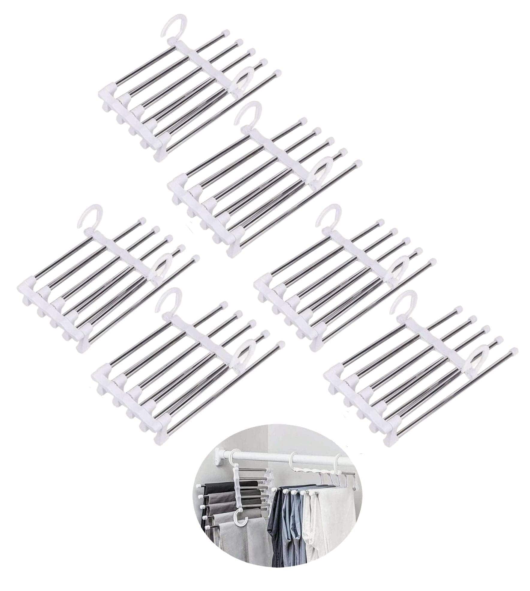 6 Pack Stainless Steel Adjustable 5 in 1 Pants Hangers Non-Slip Space Saving for Home Storage