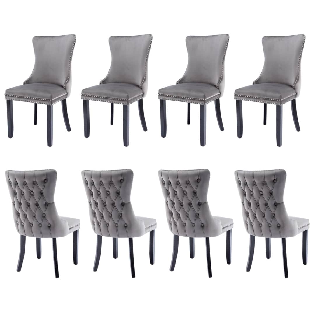 8x Velvet Upholstered Dining Chairs Tufted Wingback Side Chair with Studs Trim Solid Wood Legs for Kitchen