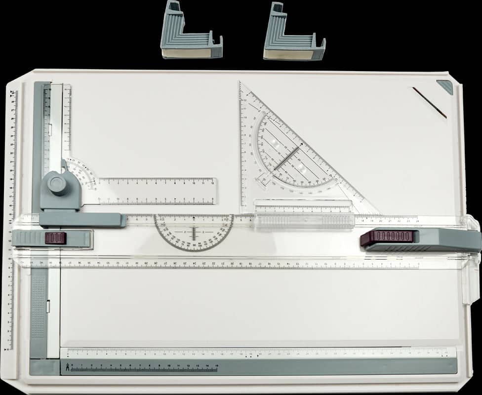 Crafted from high-quality plastic, this drawing board table set is as durable as it is light in weight. Two parallel rulers and corner clips ensure stability, making your drawings more accurate. Quick-release paper clamps on both sides secure your drawing paper.