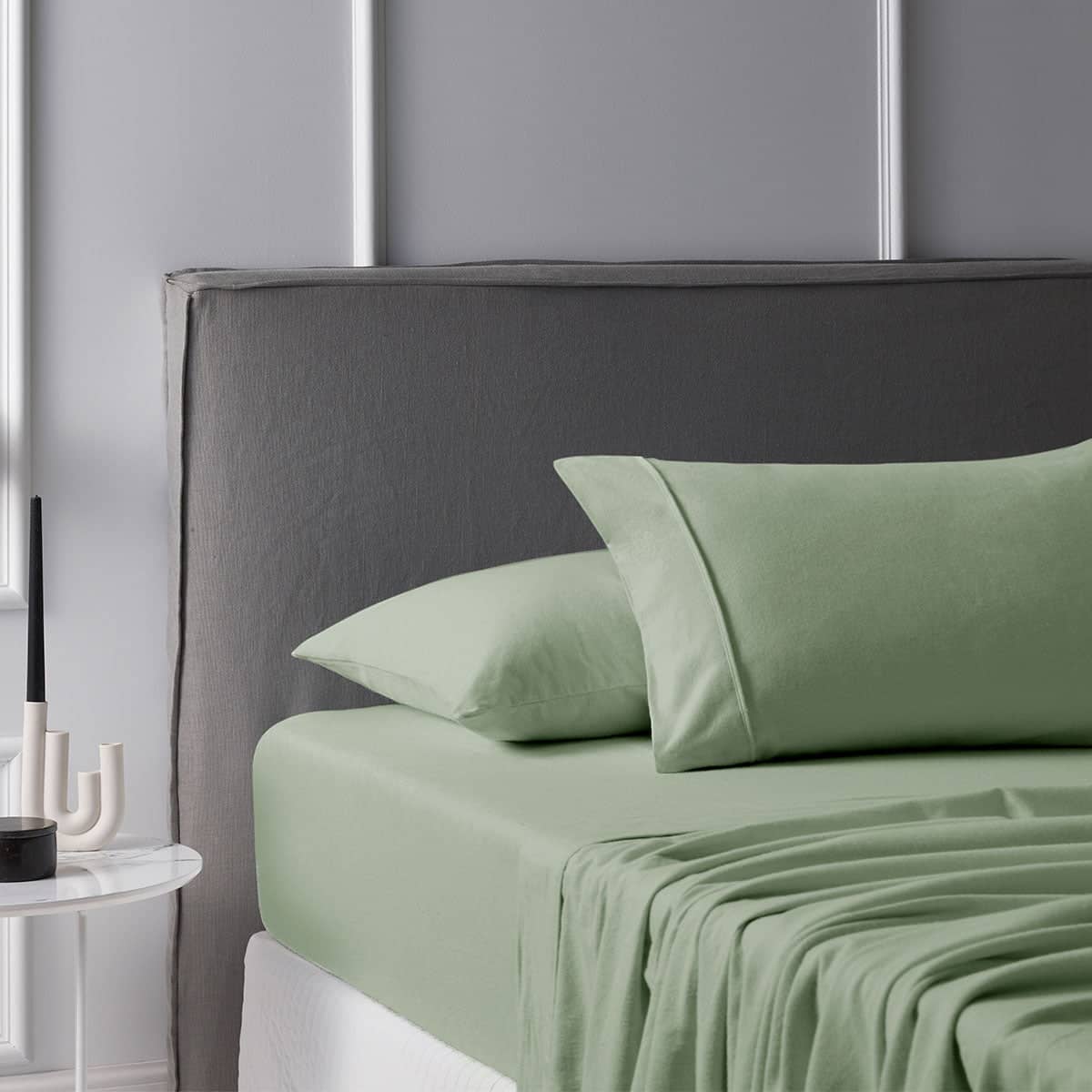 Accessorize Cotton Flannelette Sheet Set 40cm Wall Sage Queen