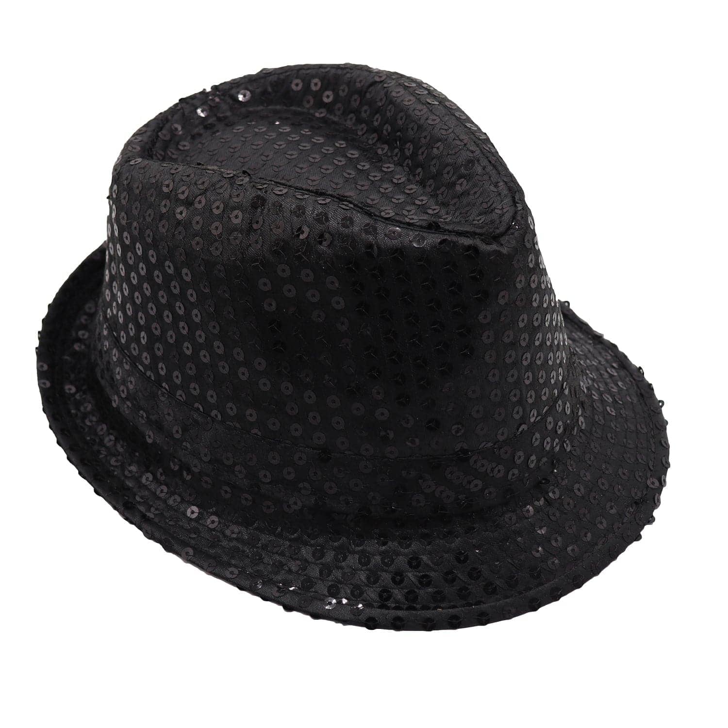 Adults Kids Unisex Sequin Fedora Hat Dance Cap Solid Jazz Party Glitter Costume, Black