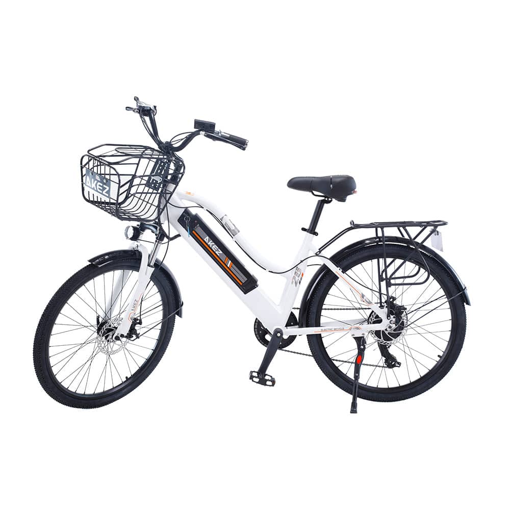 AKEZ 26 Inches Electric Bike City Bike Bicycles Assisted Bicycle Women - White