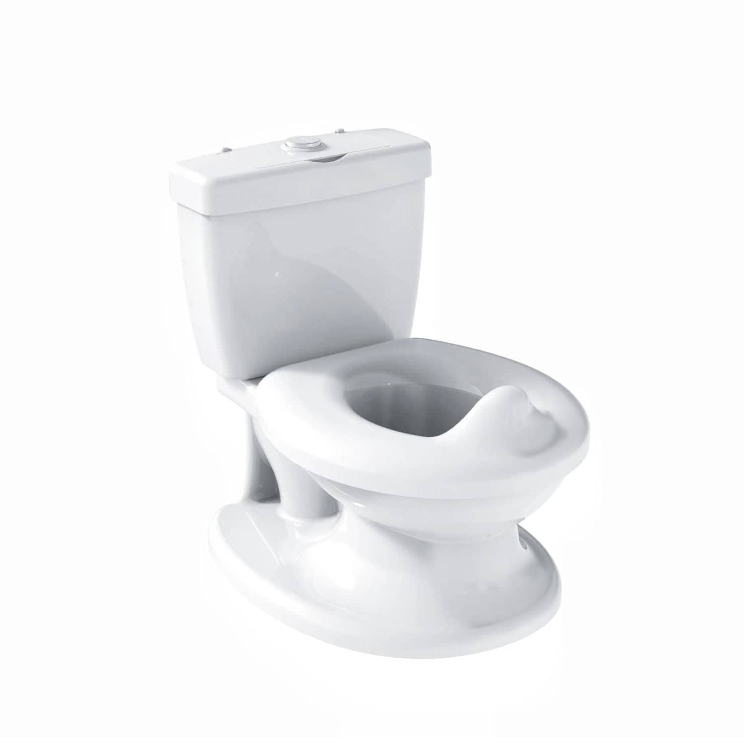 Realistic design: This product supports children during the toilet training process, providing them with the necessary tools and guidance to make the transition to using the real toilet with ease and confidence. With this support, little ones can master using the toilet in no time! Easy to clean: It's essential to properly clean your potty after every use. This potty features a removable bowl for easy cleaning. To clean the potty, simply flip up the lid and clean it. Splash prove cover: This splash proves cover is designed to prevent splashes, making it an ideal choice for boys. It can be easily clipped onto a surface. Toilet paper storage: This toilet has a built-in storage space to keep toilet paper conveniently located and readily accessible, helping promote healthy hygiene habits (Toilet Paper NOT INCLUDED). Toilet handle: The toilet handle is designed to help potty train children. It features a realistic flushing sound when the flush button is pressed, creating a more lifelike training experience. This handle also helps keep your toilet clean while potty training. Colour: White Material: Plastic Weight Limit: 23kg Built-in wiping chamber (wiping not included) Clip On Splash Shield For Boys Requires 2 AAA batteries to operate (included) Dimensions (approx. mm): 388 x 280 x 380 (LxWxH) Power Source: AAA Batteries 1 x Potty Training Seat Package Dimensions: 43 x 35 x 25cm Package Weight: 1.8kg