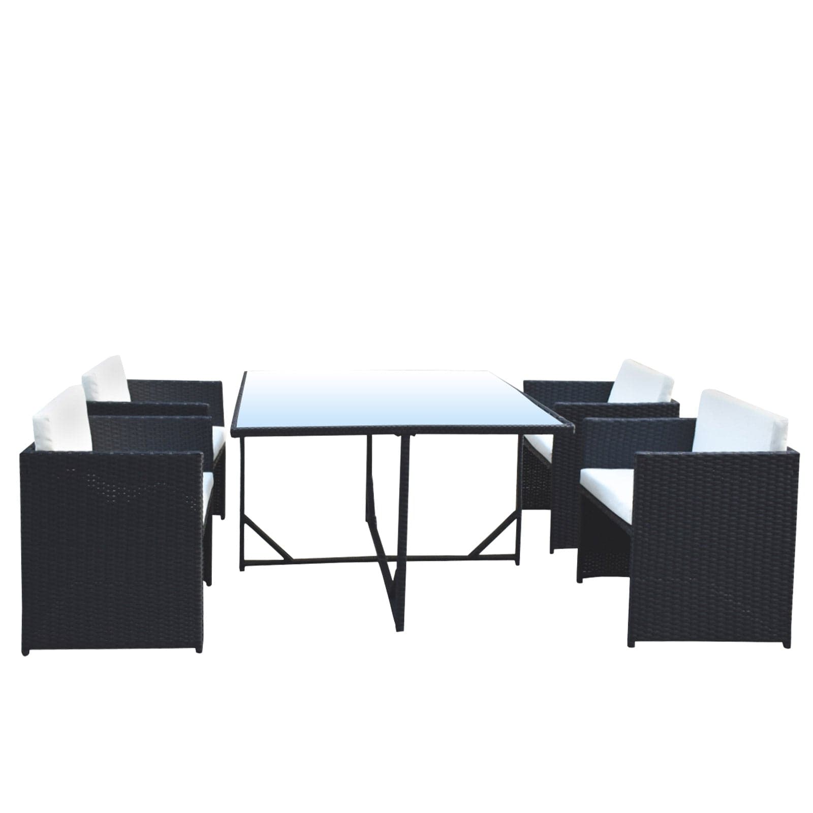 Arcadia Furniture 5 Piece Outdoor Dining Table Set Rattan Table Chairs Garden - Black and Grey