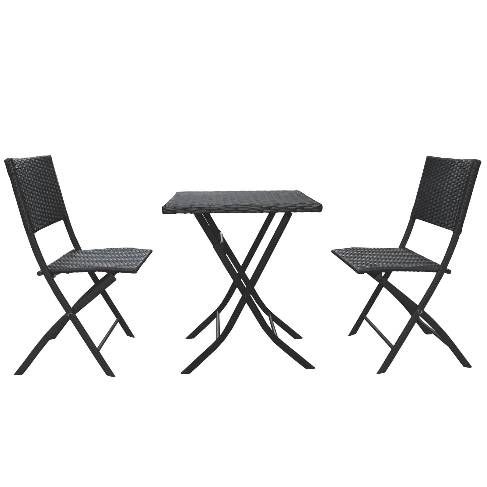 Arcadia Furniture Outdoor 3 Piece Foldable Rattan Coffee Table Set Garden Patio - Black