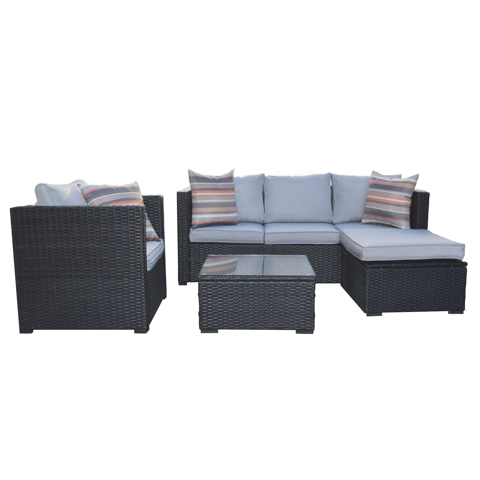 Arcadia Furniture Outdoor Rattan 4 Piece Sofa Lounge Set Home Garden Patio - Black and Grey