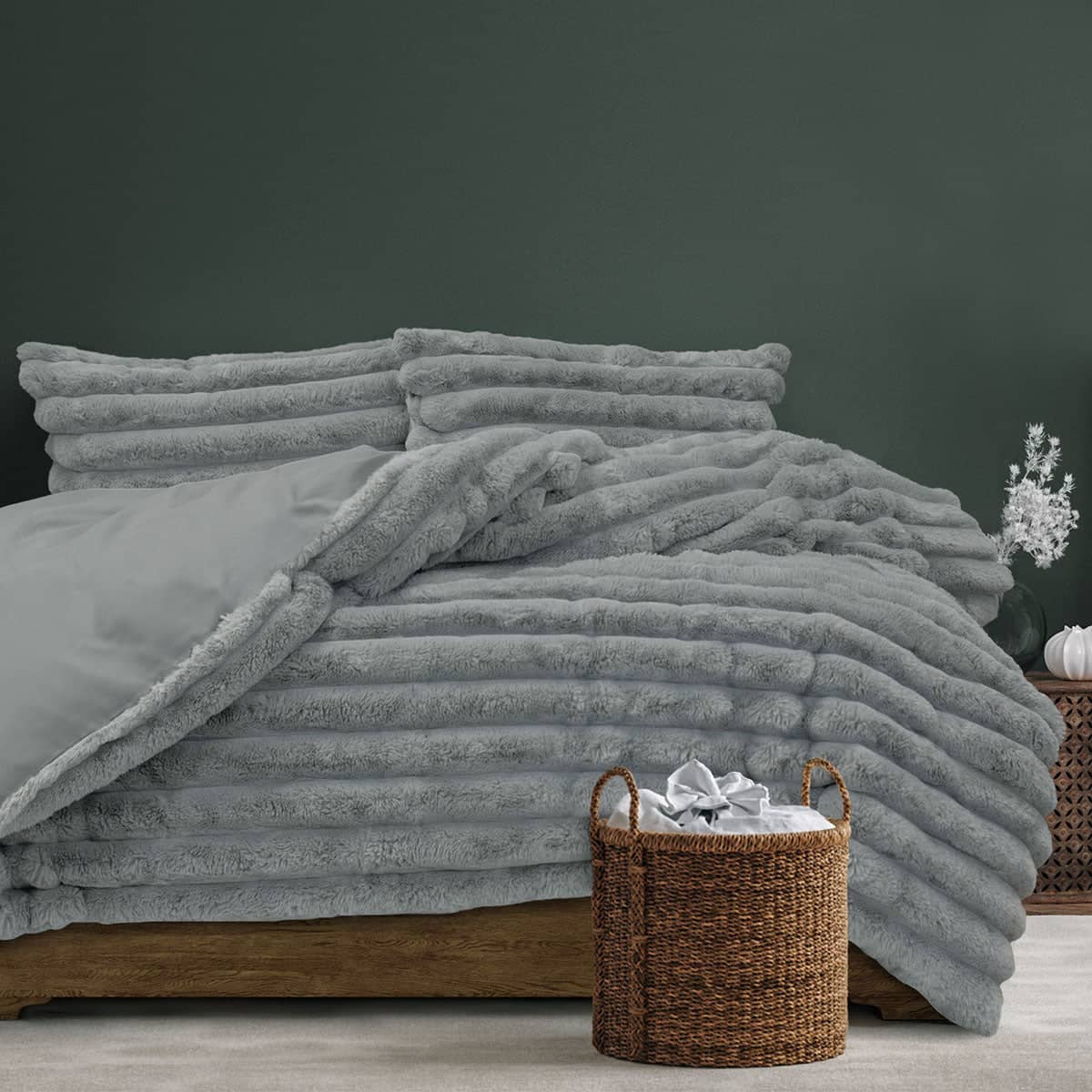 Ardor Jax Grey Chunky Faux Fur Quilt Cover Set King